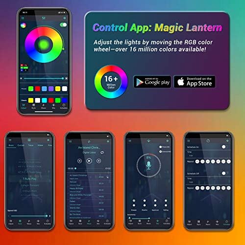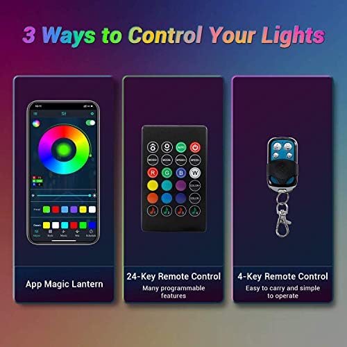 【Three Control Methods】: Control the light by the RF 4-key/24-key remote control and APP. Just download ‘Magic Lantern’ APP which is is compatible with iPhone and Android systems by scanning the QR code on the controller to achieve color adjustment function, 213 light modes, music function, microphone function, timing function.