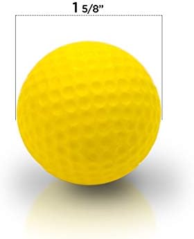 Each foam golf ball measures 1 5/8 inch in diameter and features dimples just like a regular golf ball. These practice balls may be used not only with drivers and woods, but irons and wedges, too. Each pack contains 12 yellow foam golf balls, maximizing the value of your money. Compared to regular plastic golf practice balls, ours are resistant to busting, denting, crushing or deforming, so go ahead and swing away without worrying about destroying them.