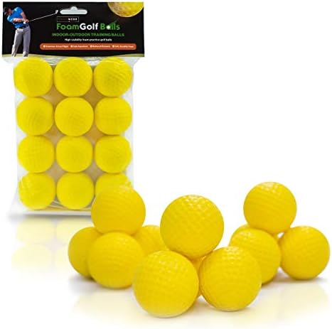 SHAUN WEBB Practice Foam Golf Balls (Pack of 12) Get Instant Feedback of Your Strike – Dent Resistant Yellow Chipping Balls, Long Lasting, Limited Flight – Perfect for Indoors, Basement & Backyard