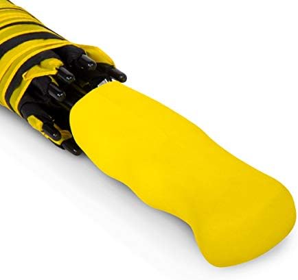 This extra-large golf umbrella opens up to an astounding 62″ arc. It’s large enough to keep you, your golf clubs, and your favorite caddie dry through all 18 holes! Despite that, it weighs only 0.9 lbs. making it lighter than other umbrellas of the same size. A contoured rubber grip makes it easy to grasp, even when going against strong gusts of wind.