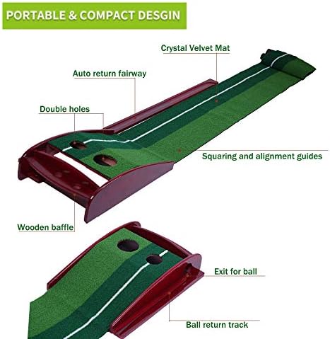 SHINYEVER Putting Mat Golf Green Indoor and Outdoor with Auto Ball Return,Crystal Velvet Mat and Solid Wood Base