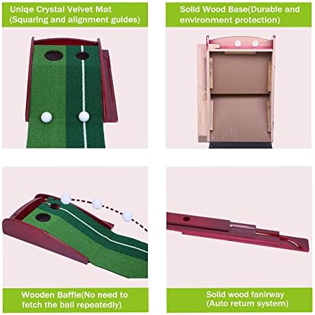 ★【High Quality Putting Mat】SHINYEVER Putting mats are desgined with a unique Crystal Velvet material allowing the golf ball to roll identical to a perfect green. The base of the putter trainer is made by solid wood, beautiful generous, durable.