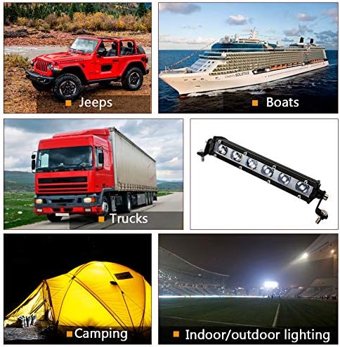 [ WIDE APPLICATION ] : The led light bars are suitable all such as Jeeps, 4×4, cars, trucks, motorcycles, SUVs, ATVs, boats, excavators, cranes etc. Garden lighting, backyard lighting, back-up light, off road lighting, construction lighting and so on