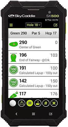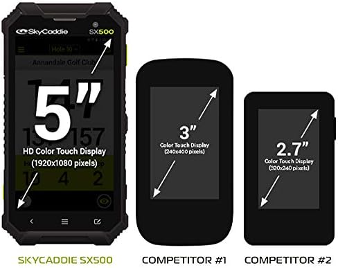 With its large 5-Inch, high-definition touch screen driven by an ultra-fast multi-core processor, the SX500 is the most powerful way to measure yardage while providing the very “best view” in golf with vivid graphics and Super large numbers you can trust. The SX500 comes in a highly water-resistant, rugged design to stand up to most anything that comes its way on the course. With the largest battery in the industry, The SX500 is ready for extended playing time. Using multi-constellation navigation satellite systems SX500 provides enhanced accuracy and greater overall better performance under tough conditions or Tree cover. The powerful processor of the SX500 allows sky Caddie to introduce “dynamic holes” that automatically re-orients the entire golf hole from your position to the green as you progress from the tee. So, in addition to sky Caddie’s patented Intelligence technology, golfers can now see the entire hole from their point-of-view only from sky Caddie Try sky Caddie’s SX500 comes preloaded with over 35, 000 ground-verified, error-corrected courses. Only sky Caddie walks each course to record thousands of points with sub-meter precision because you cannot trust your Club if you cannot trust your distances. Try sky Caddie’s SX500 and you will quickly see more, play better and have more fun than ever before. First year PREPAID membership card included in box