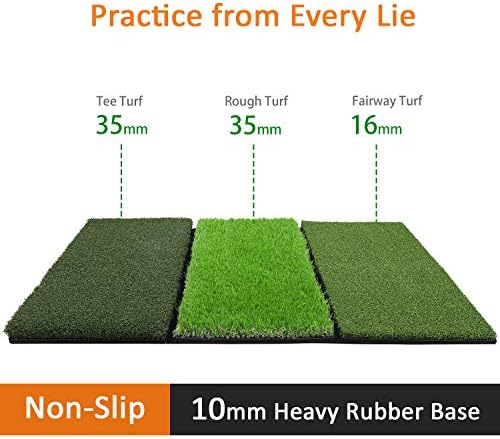 SkyLife 3-Turf Golf Hitting Grass Mat 24’’ x 37’’, Portable Training Fairway Rough TEE Turf, Driving Chipping Putting Golf Equipment, Home Backyard Garage Outdoor Practice (XL 24’’ X 37’’)