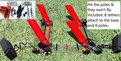 Attach the tethers to the base and loop around poles to stop them flying away when hit. Use 4 tethers for 4 poles, and you can leave unused tethers attached to base if you like. 8 included.