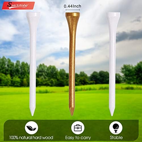 Sportstider Golf Tees, 3 1/4Inch, 77 Count,Professional Deluxe Wooden Golf Tee, More Than 20 Colors Combination, Natural Hard Wood Golf Tee