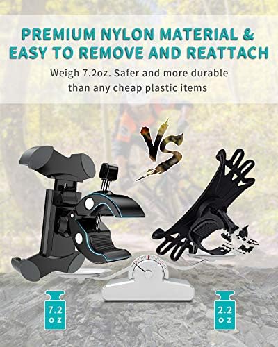Durable Nylon Handlebar Clamp: Made with the most superior Nylon military material, firmly grasps the handles even sharp turns or braking. No tools required for installation and very easy to remove & reattach! Diameter can be adjustable from 0.5’’-1.5’’, ideal for bicycle, scooter, motorbike, mountain bike, e-bicycle, shopping cart, strollers, golf, treadmills and more