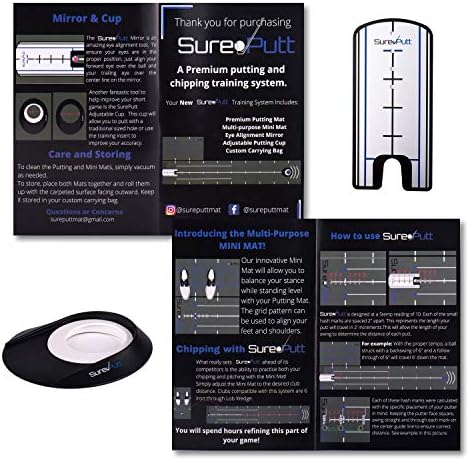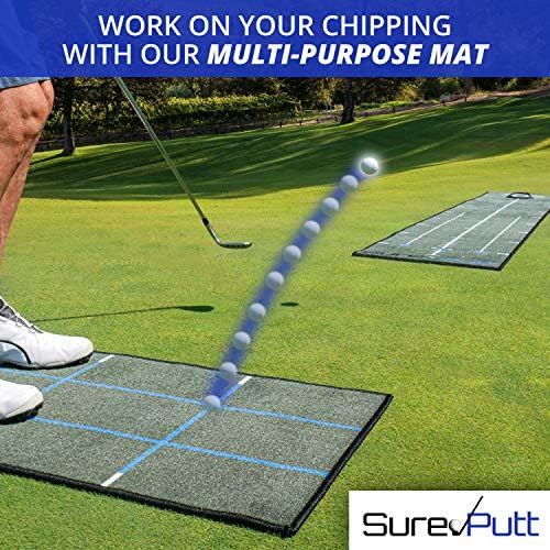 1.⛳ ✔️ PERFECT YOUR SHORT GAME AT HOME- Designed by golfers for golfers, the SurePutt training studio comes complete with all the necessities needed for putting and chipping improvement. For those long winter months SurePutt is a great replacement for the outdoor putting green