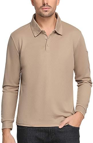 COMFORTABLE MATERIAL: Mens long sleeve polo short make of 100% polyester knit, feel smoother, more comfortable. Plus, features sweat-wicking material that pulls moisture away from the body to keep you cool and dry.