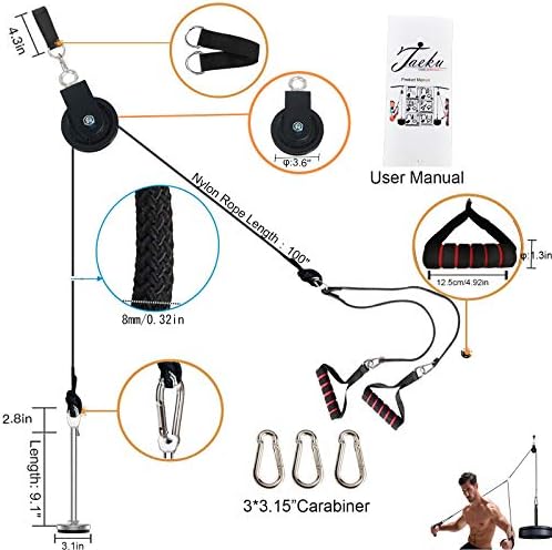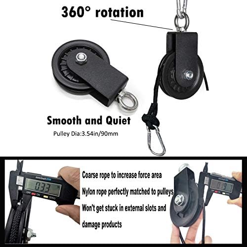 ?️♂️PREMIUM MATERIAL: Using 100inches High-strength sheathed cable materials, with Good Durability, Providing Smooth Operation. Cable Pulley System is made of Heavy-duty Steel, which is Resistant to Wear and Reduces Friction. Silent pulleys can ensure that no other noise is generated during operation. The metal-plated load pin has a maximum weight load of 200 pounds, which is a good choice for recovery training