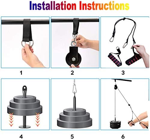 ?️EASY ASSEMBLE: You can easily remove the hoist buckle and replace the equipment handle, Just pass the loading pin through the center hole of the weight plate and connect the parts. The lifting pulley system can be connected to the power frame, pull rods, beams and wherever a belt can be installed. You can work to train biceps curl, triceps pull down, latitude pull down, LAT pulldowns, extensions fitness workout.