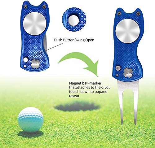 Foldable Divot Tool: The magnet in it to repair your ball marks.All Metal for solid grip and button on it is easy to pot and down.