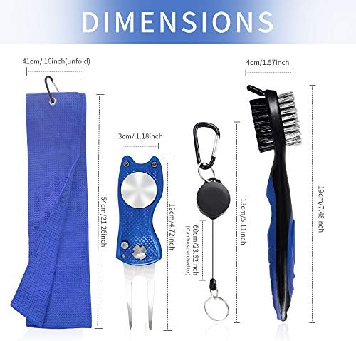 Teloky Golf Towel Microfiber Waffle Pattern Golf Towel Cleaner Brush Foldable Divot Tool with Magnetic Golf Bags