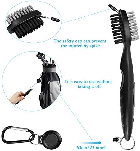Golf Brush with Groove Cleaner: Ergonomically designed soft rubber grips for comfort to hold; Wire bristles for quick and efficient cleaning of irons while on the fairway, Sharp pick for grime in grooves (comes with plastic cover)