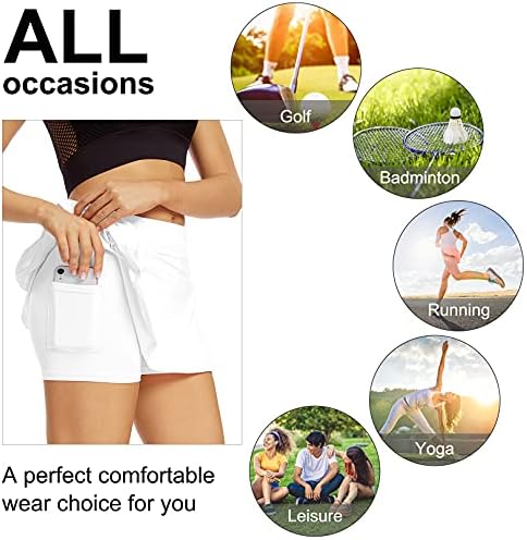 Golf Skirts for Women with Built in Shorts: Double layer style design with skirt outer and shorts inter, providing the secure coverage. Never worry about your mini skirt riding up while you train. Our active skort combination bottoms moves with your body providing moving comfort and stays put during your match.