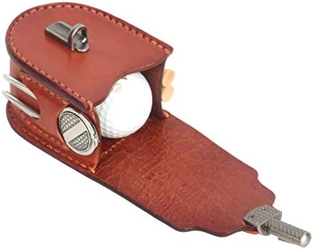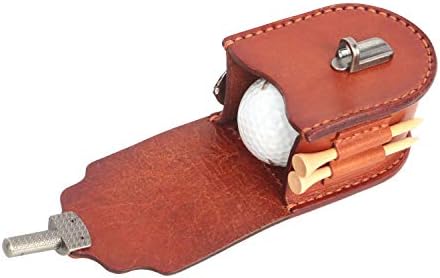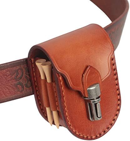 Tourbon Brown Leather Belt Golf Ball Pouch with Golf Tees Holder