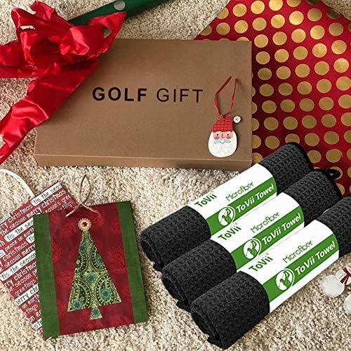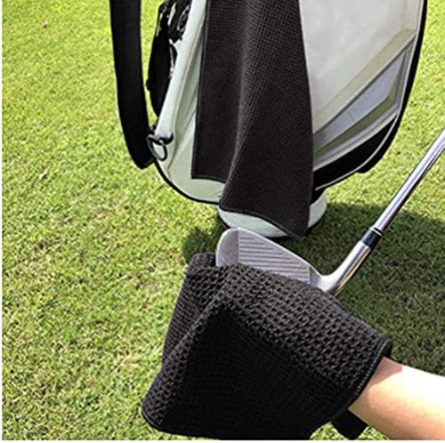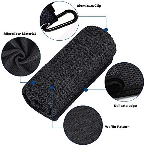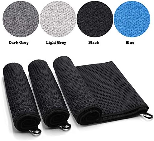 ToVii 3 Pack Golf Towel Microfiber Fabric Waffle Pattern with Heavy Duty Carabiner Clip Black