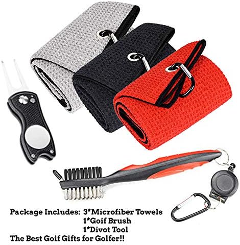 ToVii Golf Towel Microfiber Waffle Pattern Golf Towel | Brush Tool Kit with Club Groove Cleaner | Golf Divot Tool | Golf Accessories for Men