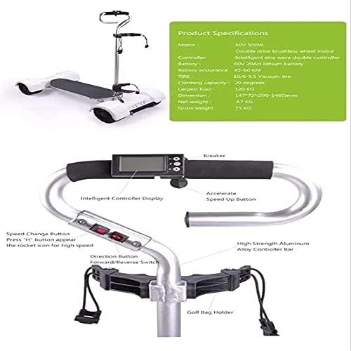 [BIG CAPAITY LITHIUM BATTERY]:Electric golf cart for long range riding,battery power is 60V.18.2Ah,124.8WhUse brushless motor which is more stable and powerful. Max Power is 1000w.Max Speed is 20KM/H