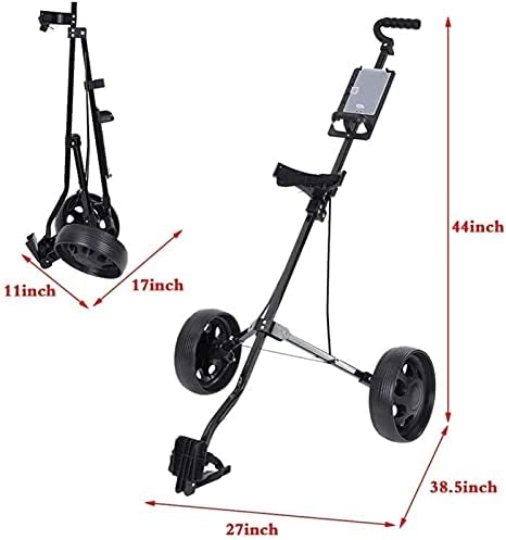 TUHFG Golf Push Cart Push Cart Foldable Golf Cart, Adjustable Height 2 Wheel Golf Trolley Steel Frame Cart Trolley Swivel