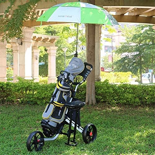 TUHFG Golf Push Cart Trolley 3 Wheel Golf Cart Trolley, 3 Wheel Push/Pull Golf Cart Folding Aluminum Alloy Frame Golf Push Cart with Seat