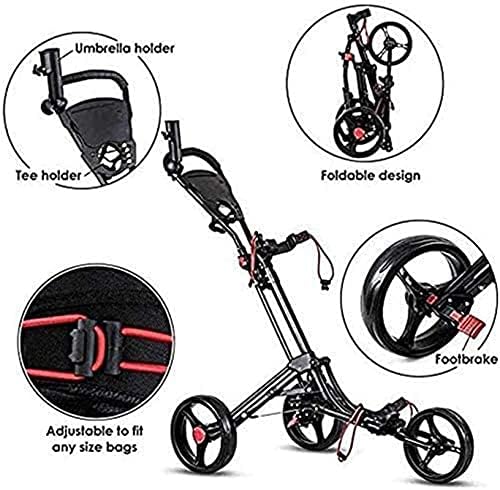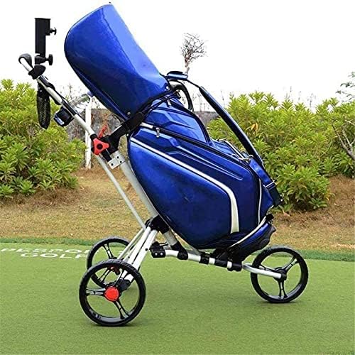 TUHFG Golf Push Cart Trolley 3 Wheel Golf Push Cart 3 Wheels Foldable Cart Golf Trolley with Umbrella Stand, Scorecard and Drink Holder Aluminum Golf Cart