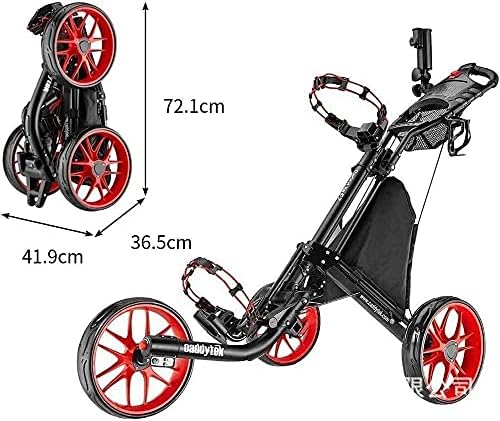 TUHFG Golf Push Cart Trolley Golf Golf Cart Lightweight Foldable Golf 3 Wheel Golf Push Cart with Drink Holder Seat One Second to Open/Close Folding Cart Collapsible Cart (Color : Red) (Color : Red)