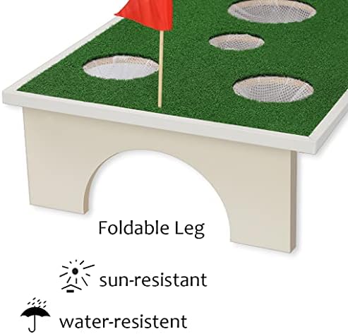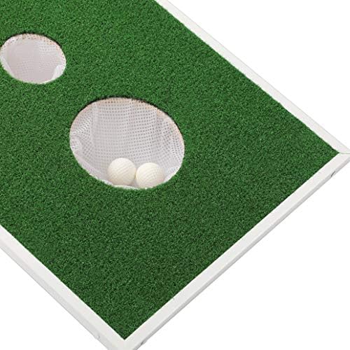 High Quality: the golf boards are constructed of high density wood, water-resistant and durable. The boards surface is covered in high quality artificial turf which is solf, non-toxic and safety, golf cornhole emulates real green feel with true roll surface for better golf putting practice. The net of each hole can touch the floor (it is easy to catch the ball)