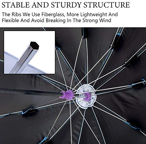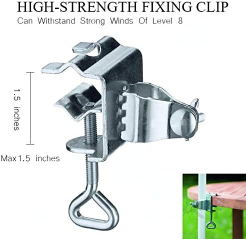 STABLE AND STURDY STRUCTURE.The ribs We use metal links to make it stronger, The canopy of this adjustable clamp umbrella is kite-shape like, creating a multi range of shade to protect you well. Locating the center of gravity of the umbrella can help the umbrella attached more firmly to chairs