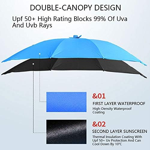 UPF 50+ Chair Umbrella with Clamp Adjustable,Beach Umbrella,Patio Umbrellas,Use for Outdoor Patio,Golf Cart,Stroller,Bleacher,61 x 43 inches