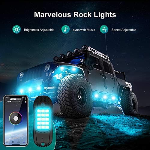 【2021 Newest Design&Multi-Control】RGB Rock Lights with 4 Key / 24 Keys RF Remote Control /Phone App remote control , you can adjust the change speed, brightness and stroboscopic speed control