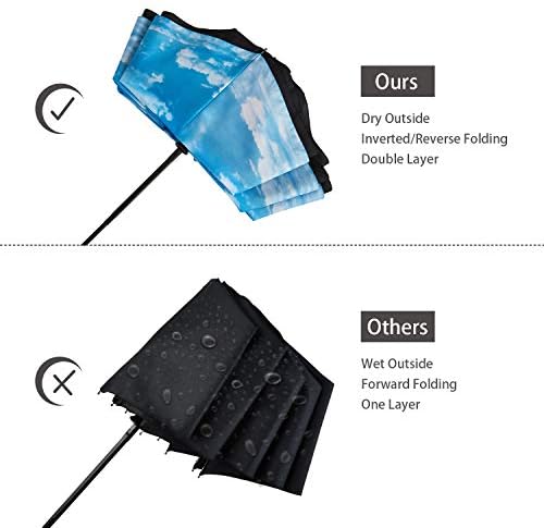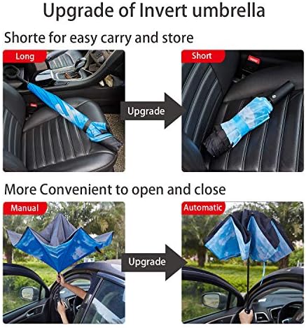 [NEWEST REVERSE DESIGN] – This Upgraded Inverted Umbrella different from regular umbrella which keeps the wet out and prevents water from dropping down