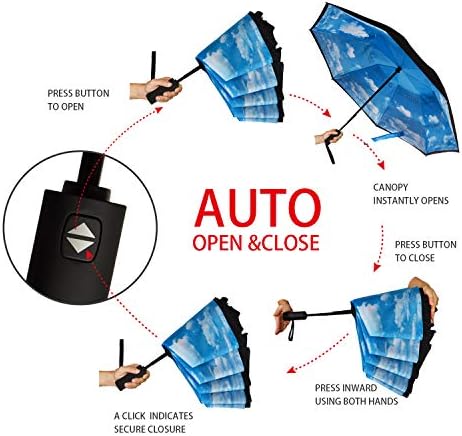 [AUTO OPEN & CLOSE] – Fully automatic system perfect for one-handed operation, you can quickly open and close the umbrella only by pressing the button on the handle