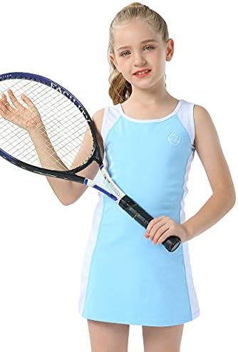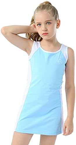 Willit Girls Tennis Golf Dress Outfit Kids Cotton Sleeveless Active Sports Dress with Shorts