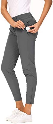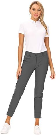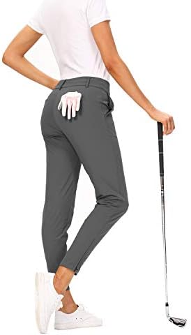 Women Pro Golf Pants Flat Front Lightweight Breathable Straight Ankle Pants with Zipper Pockets