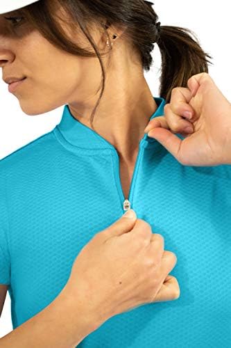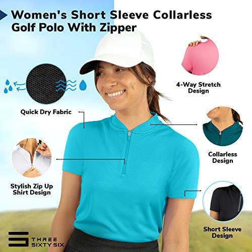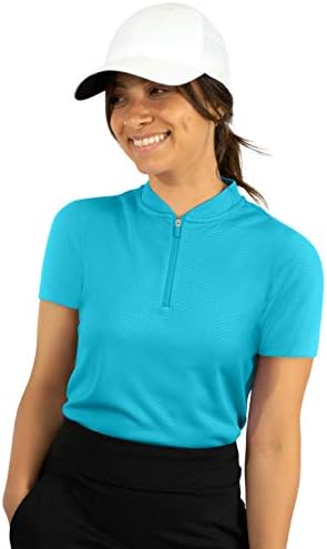 Womens Golf Polo with Zipper – Short Sleeve and Collarless Golf Shirts for Women – UV Protection, Dry Fit, and 4 Way Stretch