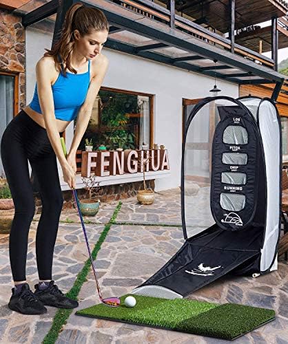 [Designed carefully] – the golf practice net can be folded. Easy to carry and store, installation speed, and simplicity. There are two sets target of goals that can be exchanged for training. and the golf hitting net ‘s ball return track can save you a lot of time. These are golf chipping net designed for golfers.
