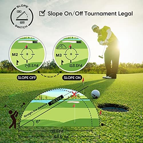 TOURNAMENT LEGAL GOLF RANGEFINDER: Slope On/Off function. M2 mode is NO Slope, M3 mode with Slope, The physical slope on/off is for tournament legal, our range finder makes it user friendly and helps you select the correct golf club.