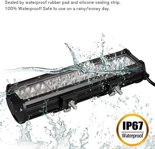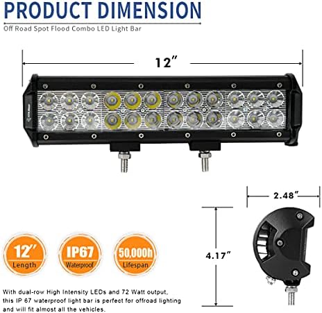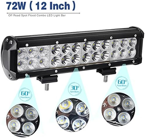 【Super Bright】: 12inch Led Light bar with 24pcsx3w High intensity led, total of 72W at 6,000K color temperature. It can light up the entire forward viewing area, that will give you comfortable and safe driving.