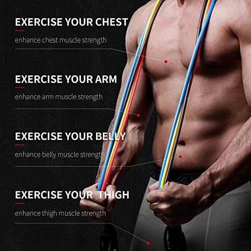 【Multifunctional】✔Yellow band(10 lbs); Green band(15 lbs); Red band(20 lbs); Blue band(25 lbs); Black band(30 lbs). The resistance bands can stackable up to 150lb. No matter you’re a beginner or a fitness enthusiast, a man or woman, you can get started easily.