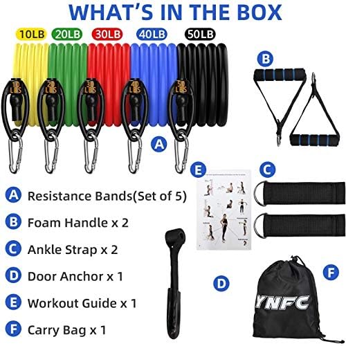 YNFC Resistance Bands Set 5 in 1 Exercise Bands, Indoor Fitness Bands with Door Anchor & Handles, Home Gym Equipment Legs Ankle for Resistance Training, Home Workouts, Fitness