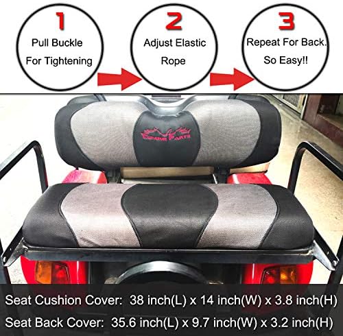 2. EZGO TXT/RXV/CC DS Front Seat Cushion Cover Size(38’x14”x3.8”)/Back Cushion Cover (35.6”x9.7”x3.2”), Universal seats cover as long as same as our size.(Allow small deviations).