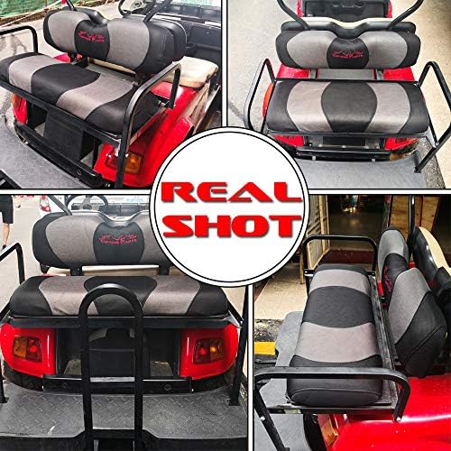 5. Save your money. Inexpensive renew and protect within short time time to install without any tools. The seats cover Fit for Club Car, EZGO, Yamaha Front seats and rear flip seats.