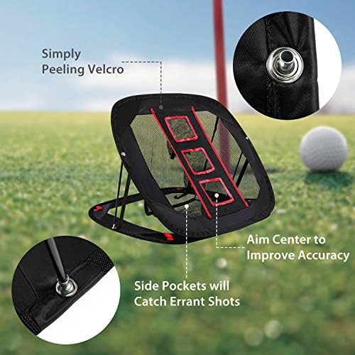 USER FRIENDLY DESIGN – Unique peeling velcro target design help you quickly start to chip. Easy pop-up design starts your chip instantly perfect for indoor and outdoor use. Ground stake design effectively protects the net from strong power swing and wind. Three target design helps you gradually improve accuracy and swing level.