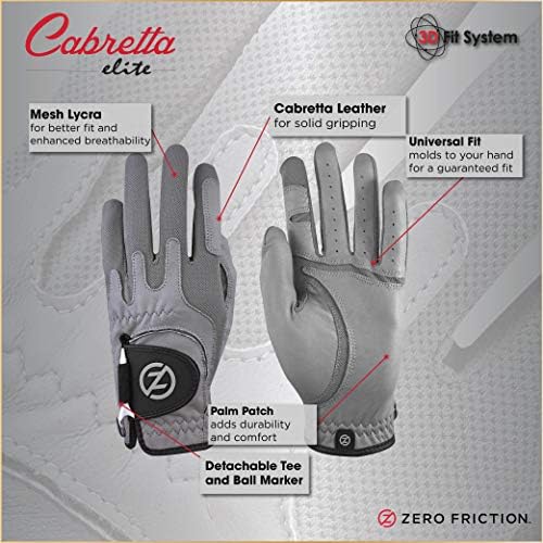 Zero Friction unique compression-fit technology, 100% authentic cabarets leather glove gets a make-over with matching lira colors. The elite glove is crafted with reinforced lira throughout finger, back of hand & palm for maximum strength, durability and enhanced breathability. The luxurious cabarets leather gives every golfer the ultimate glove experience allowing for maximum grip in almost all elements. Every glove includes a detachable tee and ball Marker.