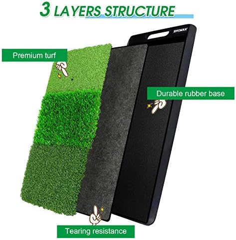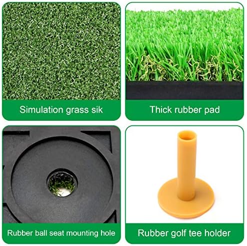 ⛳【Nonslip & Durable】- 0.6’’-THICK RUBBER BOTTOM resists wear and tear even on rough surface and is nonskid to keep the mat from moving. PP-MADE REALISTIC GRASSES do not come off easily with thousand times of use.