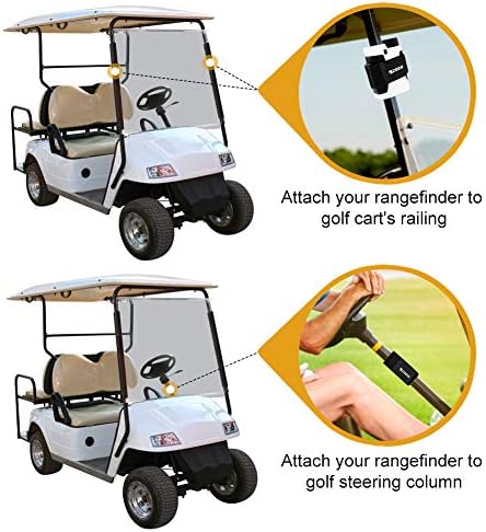 For Golf Cart – Adjustable mount strap holds your rangefinder and stick it to the frame/railing/bar of the golf cart right in front of you or attach your rangefinder to golf cart’s steering column for constant access throughout the round.