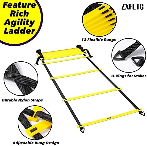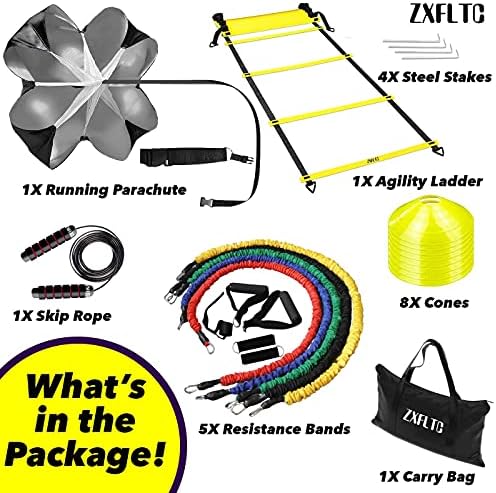 ZXFLTC Agility Ladder Speed Training Equipment-20 Feet Ladder,8 Disc Cones,5 Resistance Bands, Running Parachute, Skipping Rope-Boost Fitness,Improve Footwork in Soccer, Basketball, Football