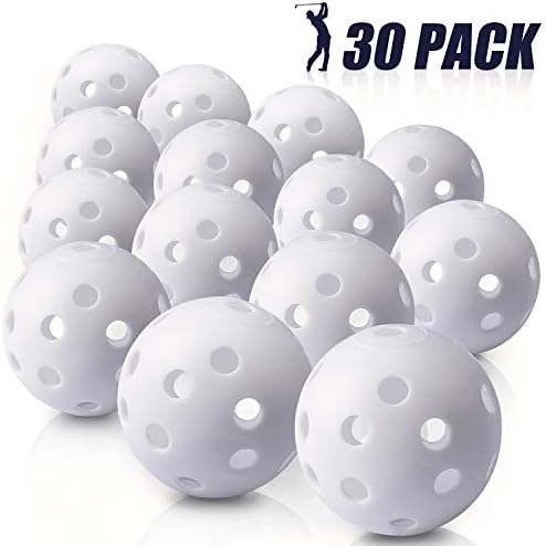 Biilaflor 30 Pack Polyurethane White Plastic Golf Balls – Bulk Set of Golf Balls for Swing Practice, Backyards, Indoor Simulators and Golf Driving Range